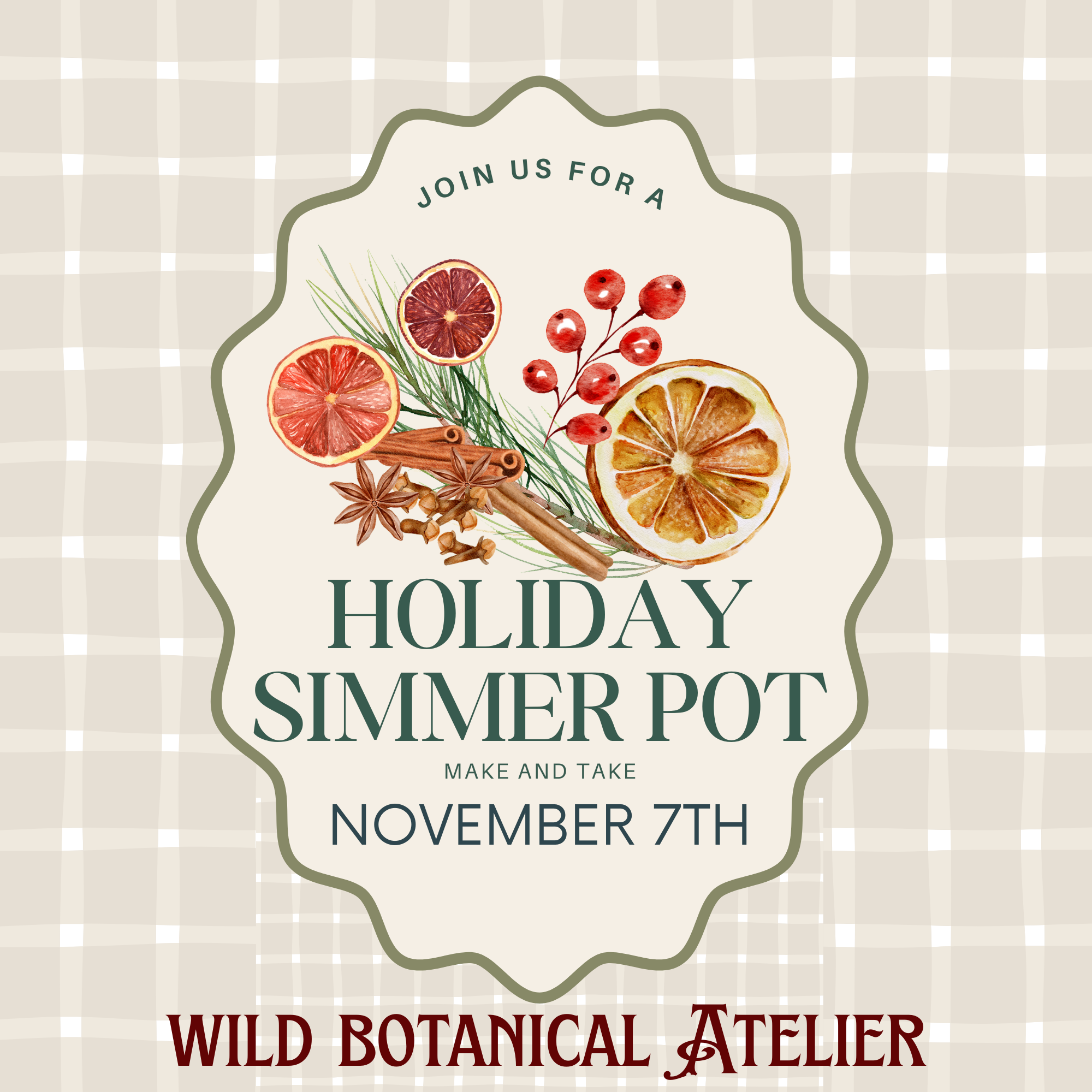 Click HERE to Buy TicketHoliday Simmer Pot Workshop with Wild Botanical Atelier. Make your very own Holiday Simmer Pot using a variety of dried fruits, florals, and herbs. More details to come!